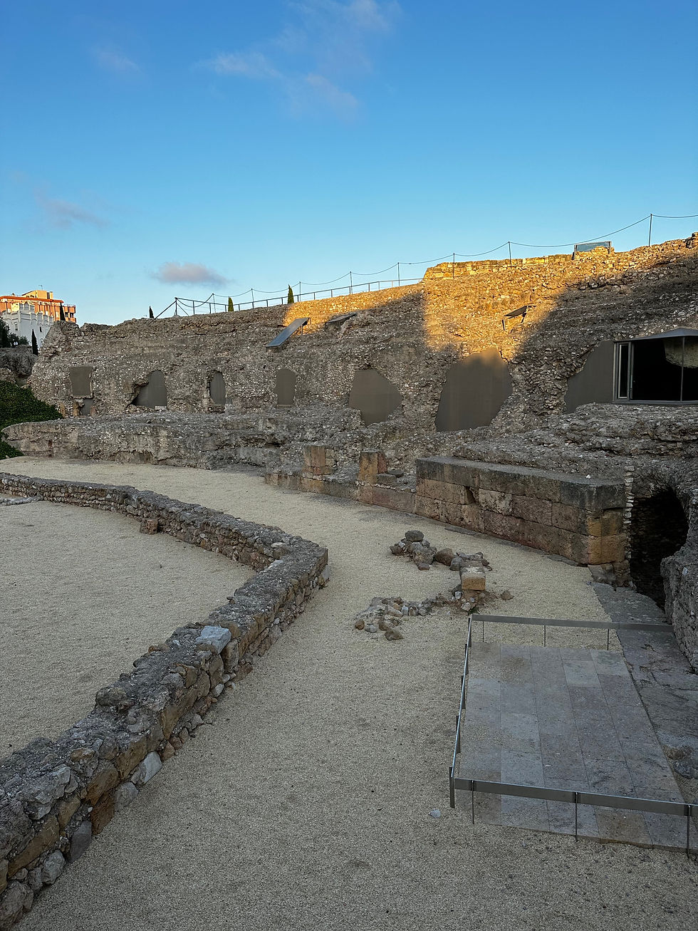 There are Roman ruins near the coast in Tarragona which we could see from the main walkway above the beach. You can see what used to be a chariot raceway and a little arena for plays.